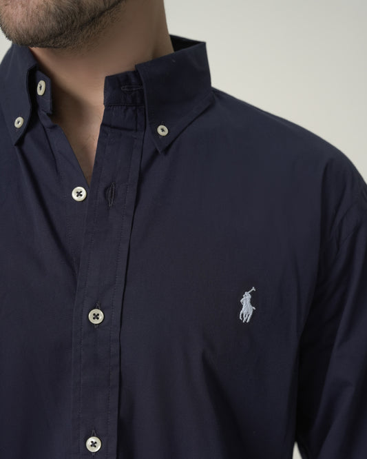 Slim Fit Navy Stretchable Poplin Shirt RL
