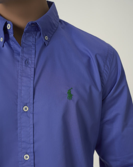 Custom Fit Blue Cotton Satin Shirt RL