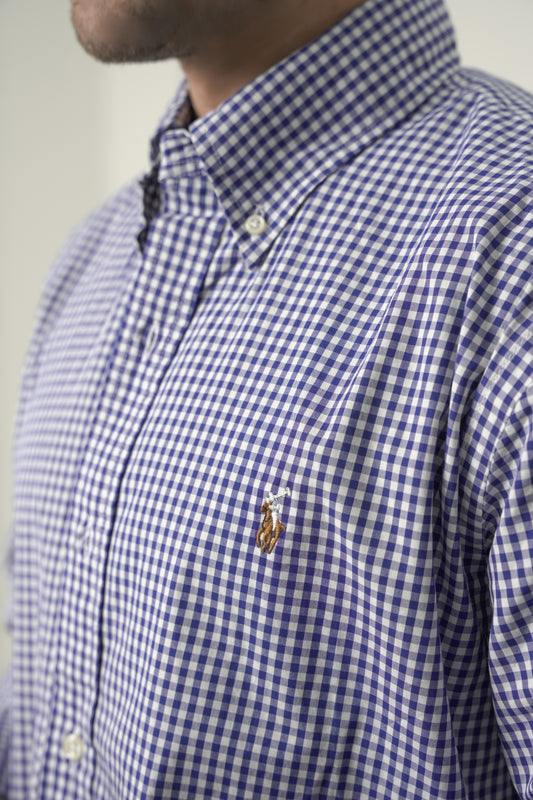 Custom Fit Blue Gingham check Shirt RL